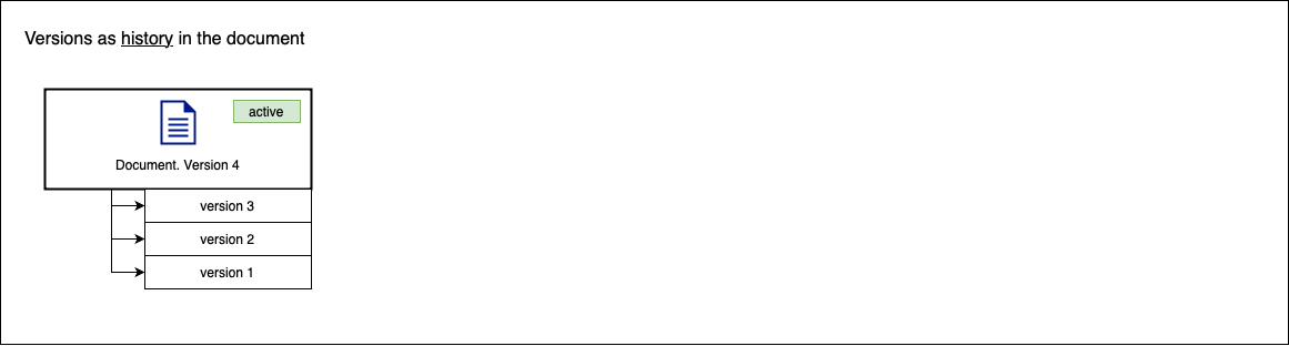 In this model, version history is maintained within the document itself, allowing users to access and manage previous versions directly from the current document. Users can easily restore earlier versions, and the system can automatically create new versions based on user actions or time intervals. This approach provides a clear and centralized version management structure, but limits status and editing control to the latest version only.