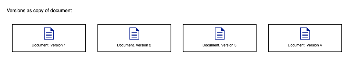 In this model, users create a new version by duplicating the document and adding version information to the copy. Although this may not seem like a version history from the system's perspective, it is the most popular approach among users. You have likely used this method yourself, creating copied files with added information like "Final Version." This approach is familiar and easy to understand, allowing users to manage and control their versions independently.