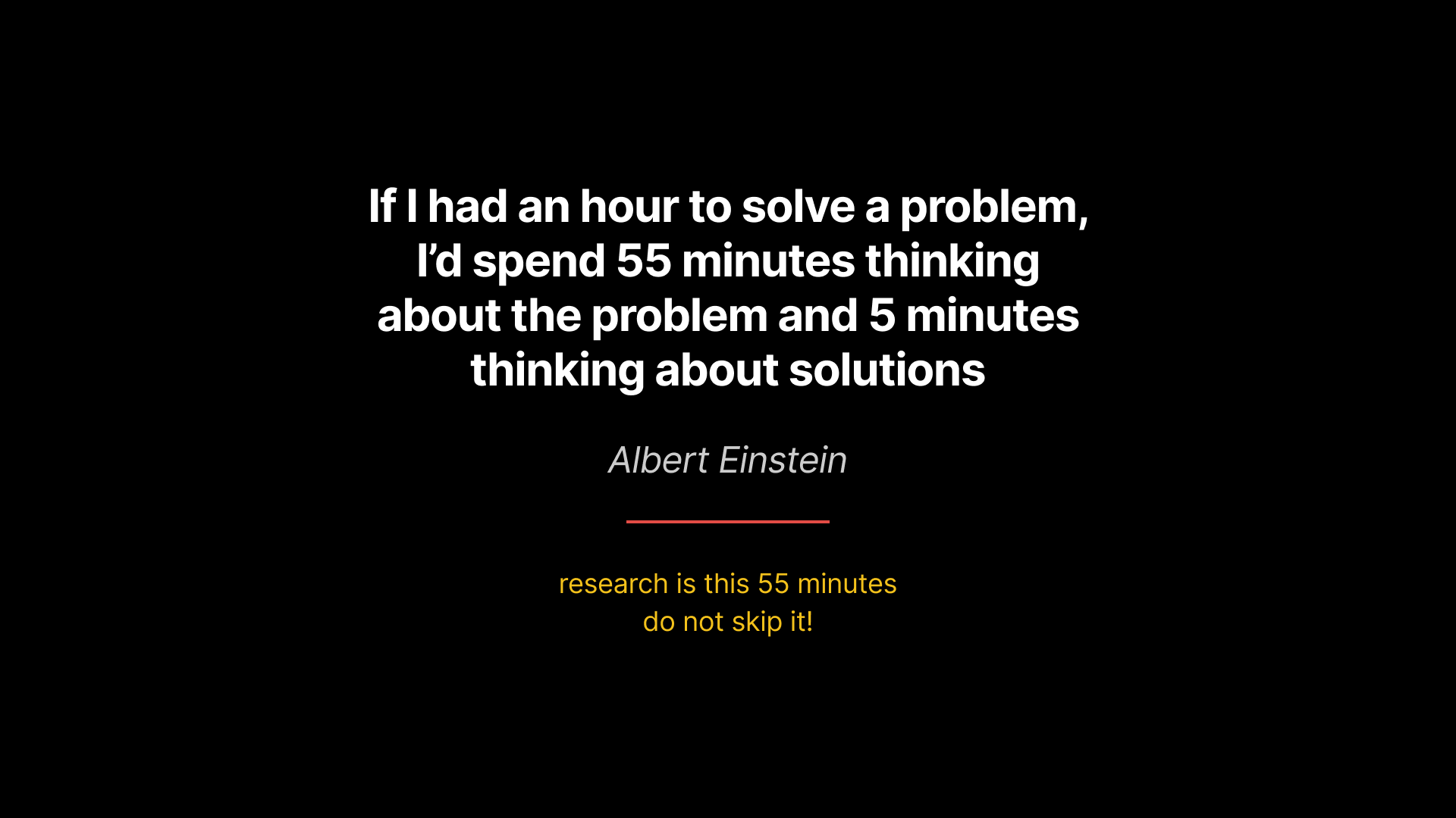 “If I had an hour to solve a problem, I’d spend 55 minutes thinking about the problem and 5 minutes thinking about solutions.”